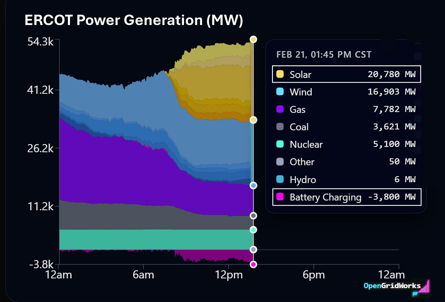 CAISO and ERCOT now look strikingly similar on mild spring mornings, with 20GW+ gluts of solar generation and gigawatts of batteries soaking it up.